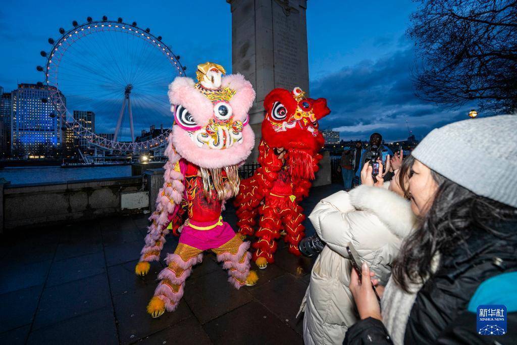 2月16日晚,在英国王人门伦敦开云「中国」Kaiyun官网登录入口,演员在亮起红色灯光的“伦敦眼”前饰演舞狮。