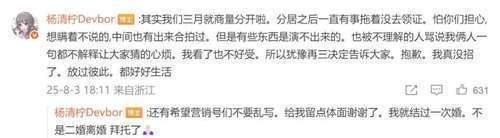 令东说念主惊诧的是,这段看似陡然的差异,其实早已埋下伏笔。杨清柠露馅,早在三月份,他们就还是权衡好分开,仅仅因为种种原因,一直拖延着莫得去办理差异手续。这段婚配,从领证到为止,不及两年,令东说念主唏嘘不已。