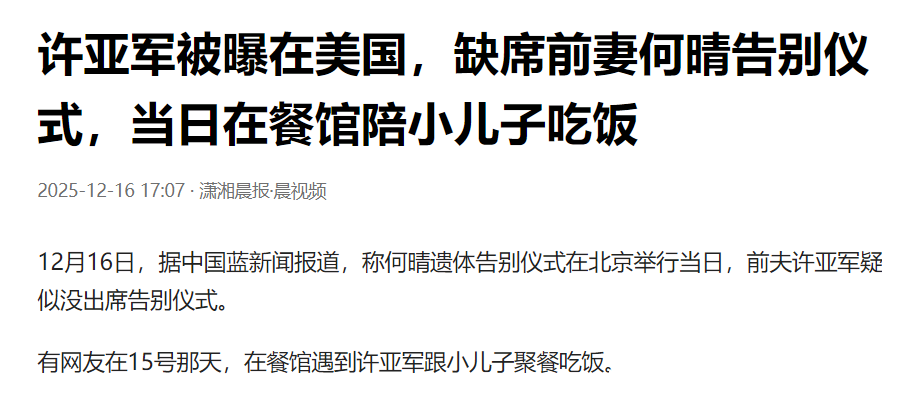 有在好意思国的网友在何晴葬礼今日偶遇了许亚军。