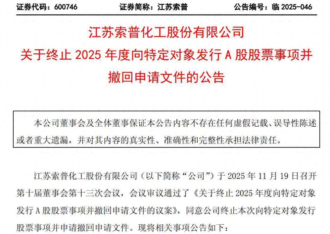 11月19日晚间开云「中国」Kaiyun官网登录入口,江苏索普(600746)发布公告称,概述斟酌现时外部环境,调治公司实际情况等要素,经相关各方充分不异、审慎分析后,公司决定辩认本次向特定对象刊行股票事项并请求撤除相关请求文献。