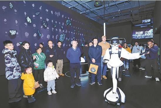 机器东谈主小芯在当然博物馆为旅客教学。